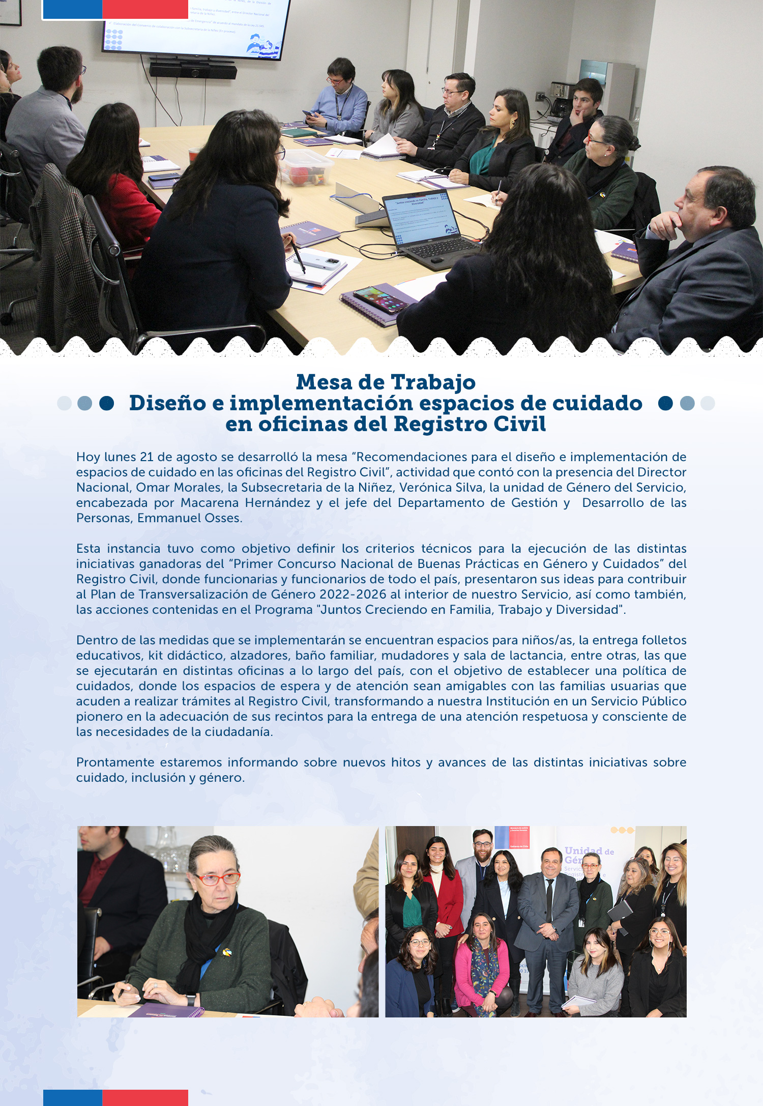 Diseño e implementación espacios de cuidado en oficinas del Registro Civil